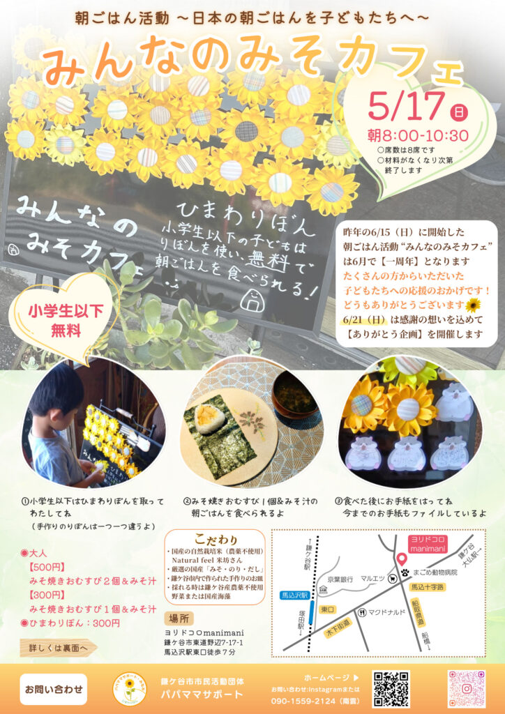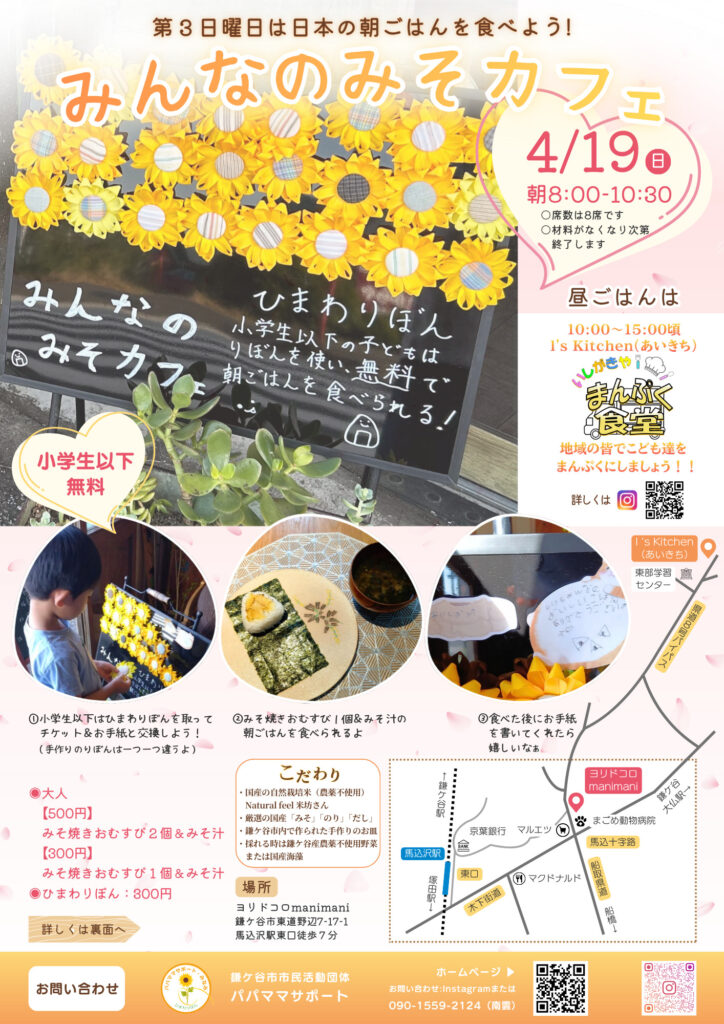 「みんなのみそカフェ」など、親子で楽しみながら健康習慣を身に付けるイベントを企画しています。