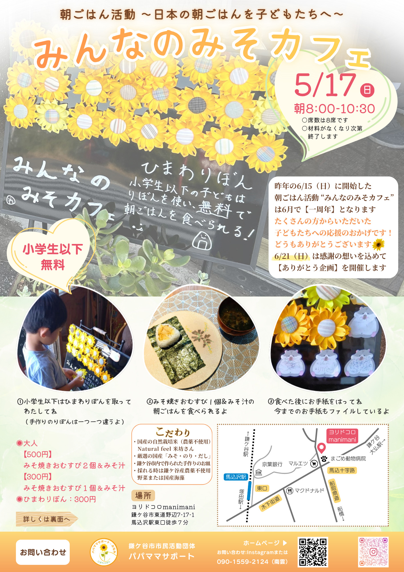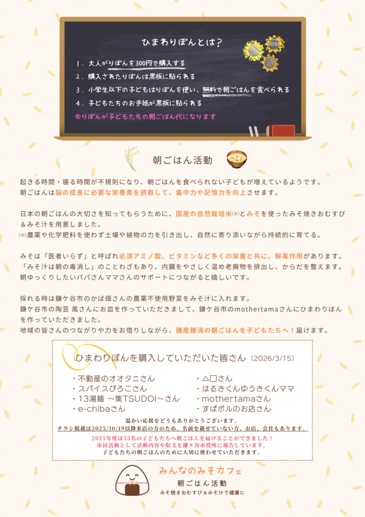 ・ひまわりぼん(大人が払う子どもたちの朝ごはん代):300円